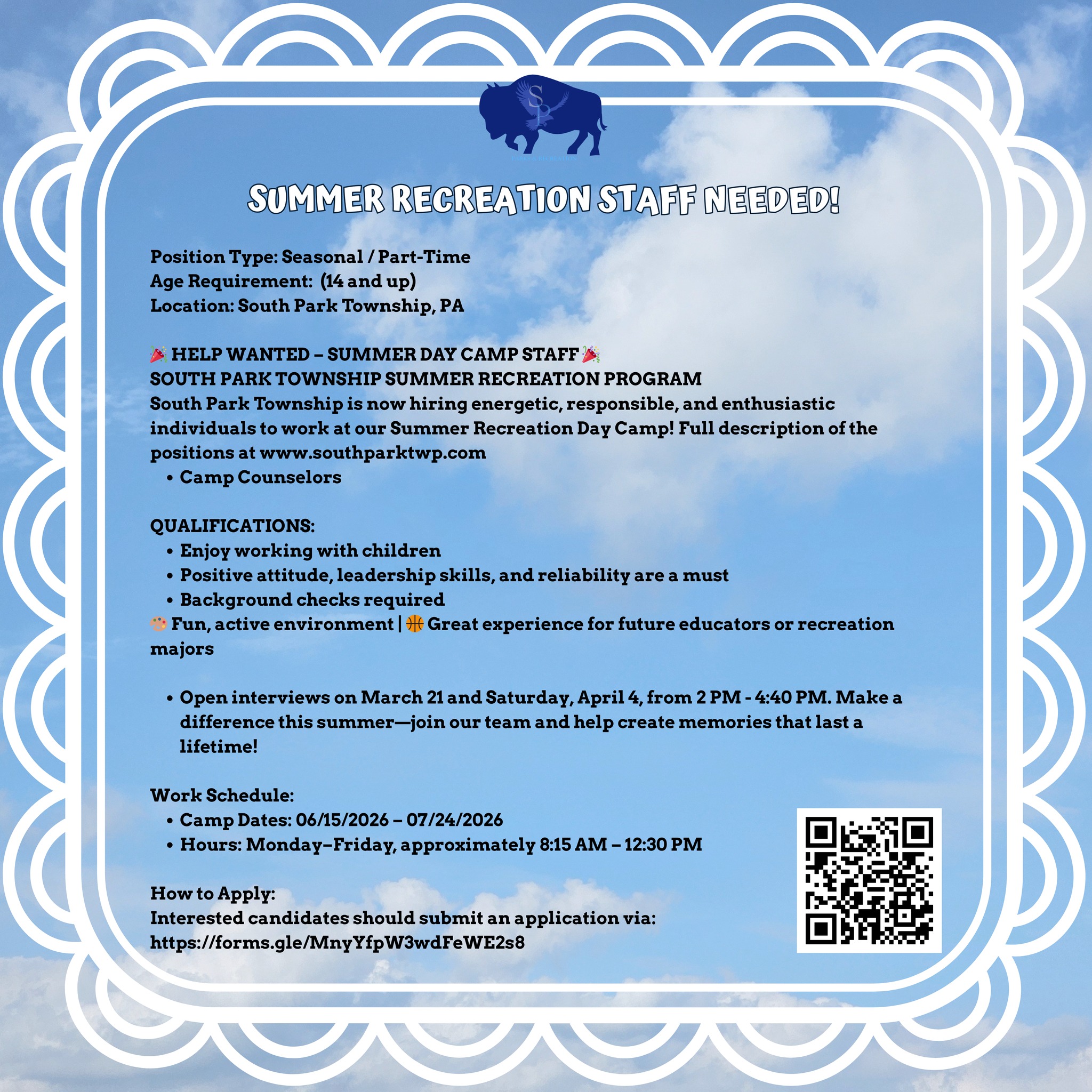 SOUTH PARK TOWNSHIP SUMMER RECREATION STAFF NEEDED